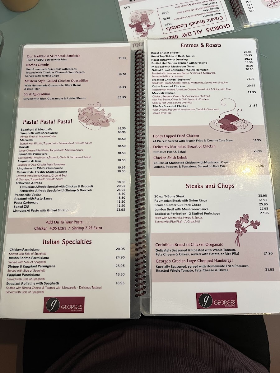 For lunch or dinner, George's Specialties shine through, with dishes like Chicken Francaise and T-Bone Steak Pizzaiola, each crafted to satisfy hearty appetites. With a commitment to value and quality, George’s has something delicious for everyone, inviting guests to come back again and again.
